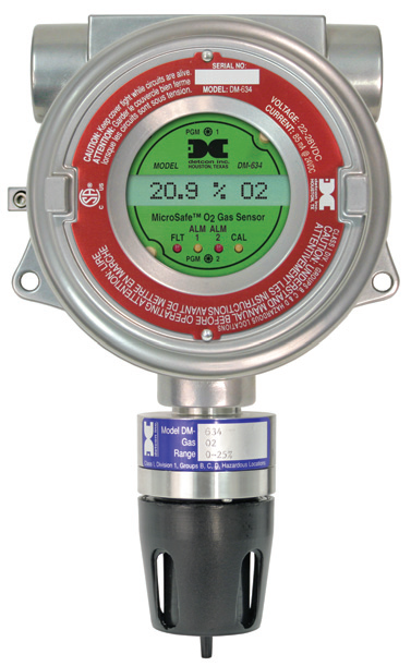 Detcon Model DM-634 detectors are non-intrusive "intelligent" detectors designed to monitor ambient air for oxygen concentrations between 0 and 25% by volume.